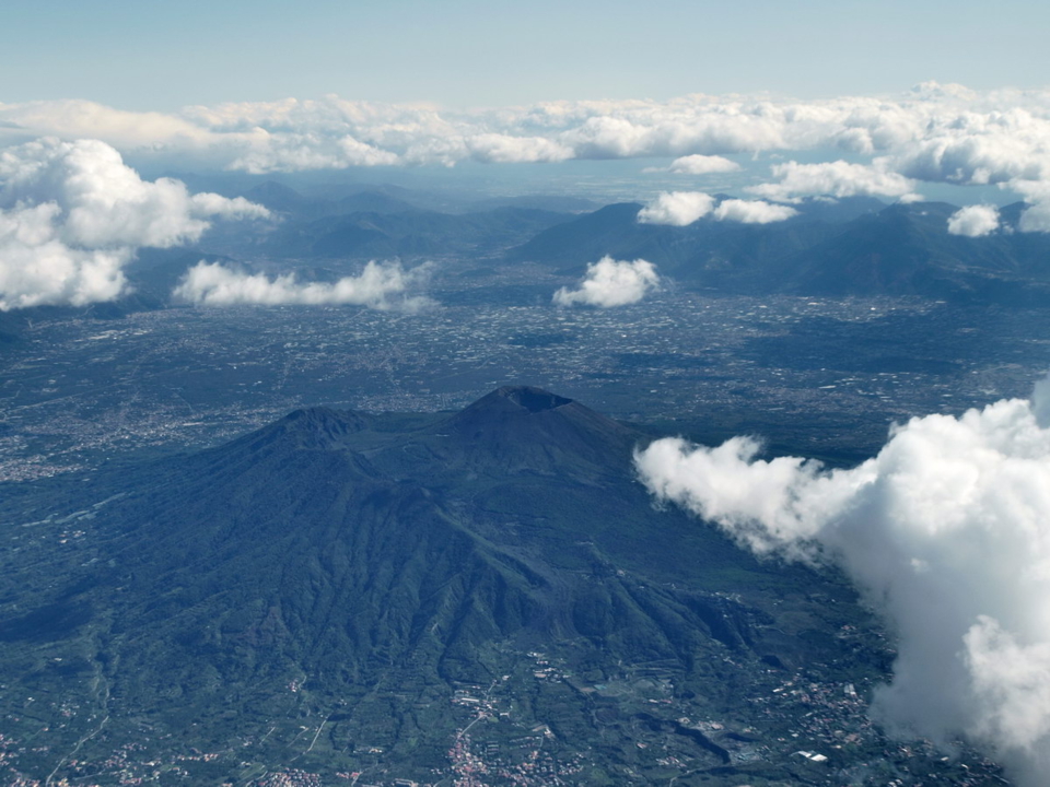 Az 1281 méter magas Vezúv a Kr. u. 79. augusztus 24.-én történt vulkánkitörésről nevezetes, mely teljesen elpusztította és betemette Pompeji és Herculaneum városát, több mint 1000 ember halálát okozva. Ma is a világ egyik legveszélyesebb vulkánjának tartják, mivel egy esetleges kitörés akár 3 millió embert érinthet. A 20. században is kétszer kitört a vulkán: 1906-ban és 1944-ben. 1906-ban több mint 100 ember életét követelte. Az 1944-es vulkánkitörés 4 falut rombolt le.