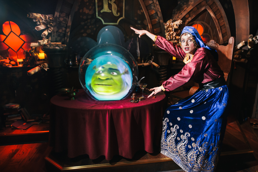 A Shrek kaland során, 10 termen keresztül haladunk végig a Shrek szereplőknek beöltözött színészek segítségével egy kitalált Shrek történeten. A show szereplői leszünk mi magunk is. Kiválasztott embereknek még feladatuk is lesz :-) A történet egy varázslatos 4D-s repülő buszélménnyel indul, majd különféle híres szereplőkkel, köztük Fiona hercegnővel és szamárral is találkozunk. Egyedülálló élményt nyújtó az egész család részére. A DreamWorks stúdió más sztárjaival is találkozhatunk így pl. a Kung Fu panda, a Madagaszkár, vagy az Így neveld a sárkányodat filmekből.